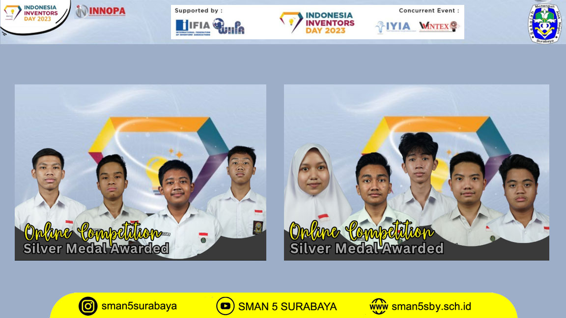 Kebanggaan kembali menghampiri SMA Negeri 5 Surabaya. Para siswa berhasil mengharumkan nama sekolah, kota, dan bangsa di kancah internasional melalui ajang International Young Inventors Award (IYIA) – Indonesia Inventors Day 2023. Kompetisi yang diikuti oleh lebih dari 35 negara ini menjadi panggung bagi para inovator muda untuk menunjukkan karya-karya terbaik mereka.