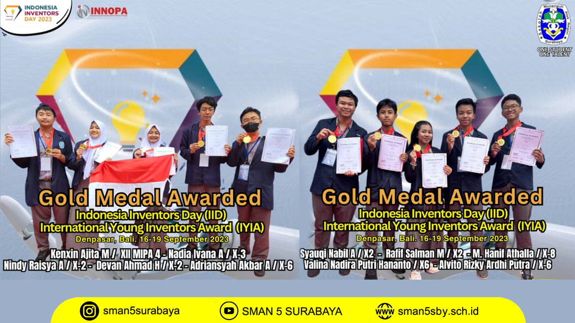 Surabaya – Prestasi membanggakan kembali diraih oleh siswa-siswi SMA Negeri 5 Surabaya (Smalabaya) di kancah internasional. Tim Smalabaya berhasil meraih medali Emas dalam ajang Indonesia Inventors Day (IID) – International Young Inventors Award (IYIA) yang diselenggarakan di Denpasar, Bali, pada tanggal 16-19 September 2023.