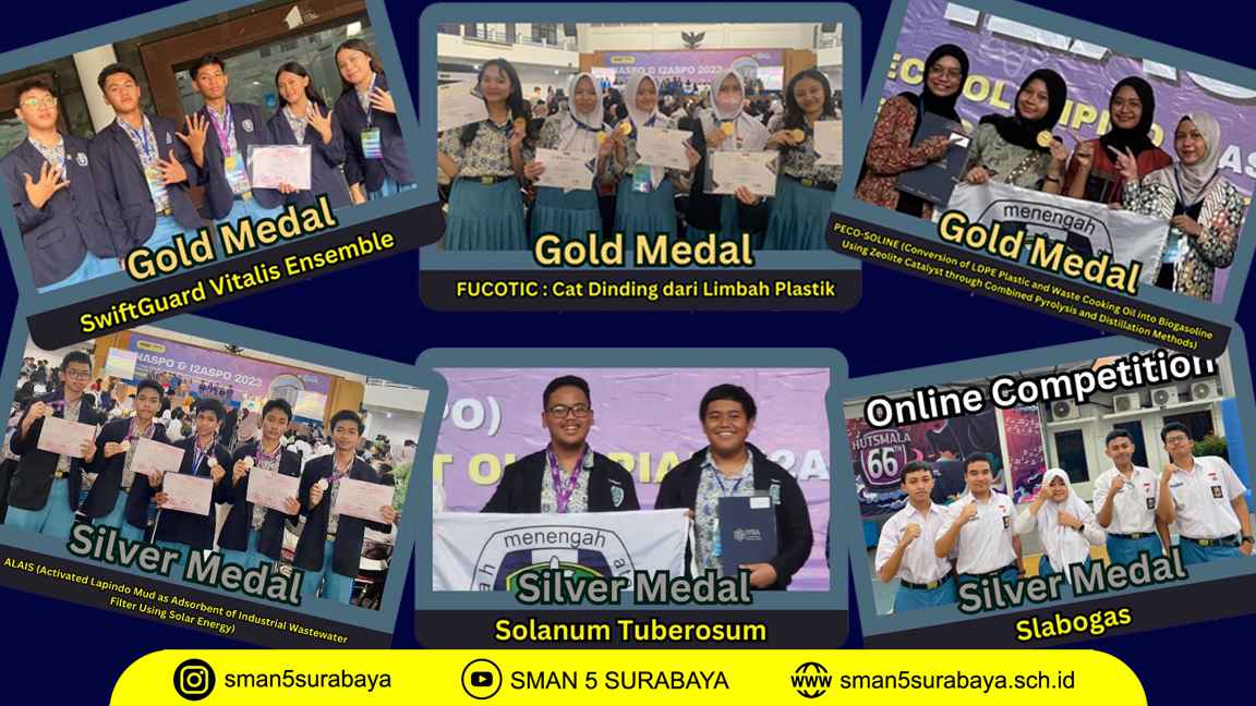 Prestasi yang luar luar biasa kembali diperoleh siswa siswi SMA Negeri 5 Surabaya. Kali ini di bidang penelitian tingkat Internasional yang diselenggarakan oleh Indonesian Young Scientist Association (IYSA) yang bertempat di Graha ITS, Surabaya, pada tanggal 19 s.d 22 Desember 2023.