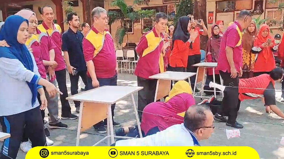 Dinding dan pagar pemisah seringkali membuat kita merasa asing dengan tetangga sendiri. Hal itu tidak berlaku bagi para guru dan karyawan di empat SMA Negeri di Jalan Wijayakusuma Surabaya. SMAN 1, 2, 5, dan 9 Surabaya kembali membuktikan bahwa persaudaraan tidak mengenal batas fisik melalui perayaan HUT Republik Indonesia yang digelar secara bersama-sama.