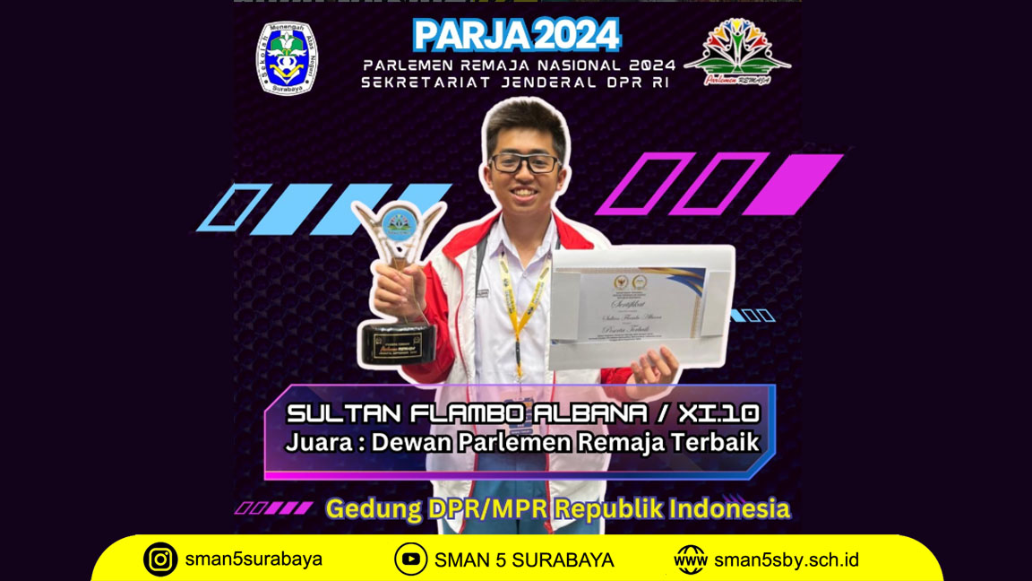 Kabar membanggakan datang dari dunia legislatif muda Indonesia. Sultan Flambo Albana, siswa kelas XI-10, berhasil mengharumkan nama sekolah dengan meraih penghargaan bergengsi sebagai Dewan Parlemen Remaja Terbaik pada kegiatan Parlemen Remaja Nasional 2024.
