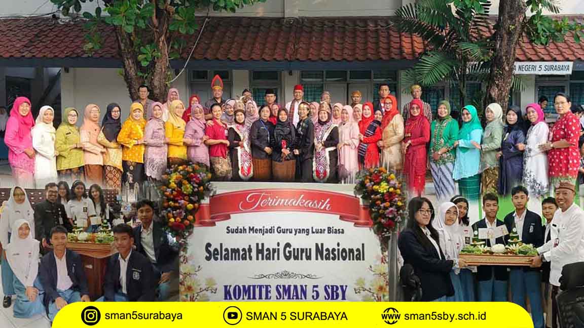 Hari Guru Nasional 2024 di SMA Negeri 5 Surabaya berlangsung berbeda, Senin (25/11/2024). Bukan hanya seremonial biasa, peringatan tahun ini terasa lebih hangat dan penuh kejutan karena seluruh rangkaian acara digerakkan oleh inisiatif dan kreativitas siswa sebagai bentuk cinta kasih kepada para guru.