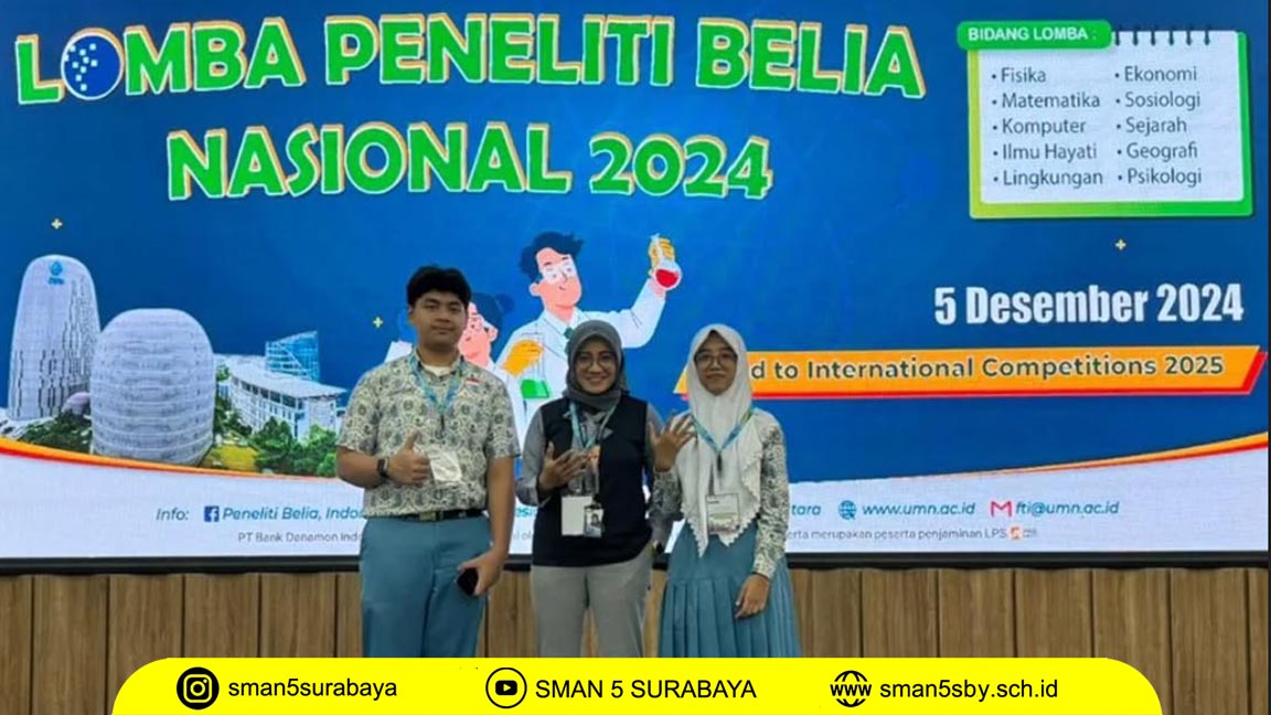 Selamat untuk DIO MAHAPUTRA ROBIKA dan LADY FLOPPYTHA KAMILAH AZZAHRA, dengan prestasi Juara 3 cabang Environmental Science dalam ajang Lomba Peneliti Belia (LPB) 2024. yang merupakan lomba riset untuk siswa sekolah menengah dan yang sederajat (SMA/ SMP/ SMK/ MA/MTs) pada bidang Mathematics, Physics, Computer Science, Life Science, Environmental Science, Sociology, Psychology, History, Economics, dan Geography. yang diselenggarakan di UMN Jalan Scientia Boulevard Gading, Curug Sangereng, Serpong, Kabupaten Tangerang, Banten.