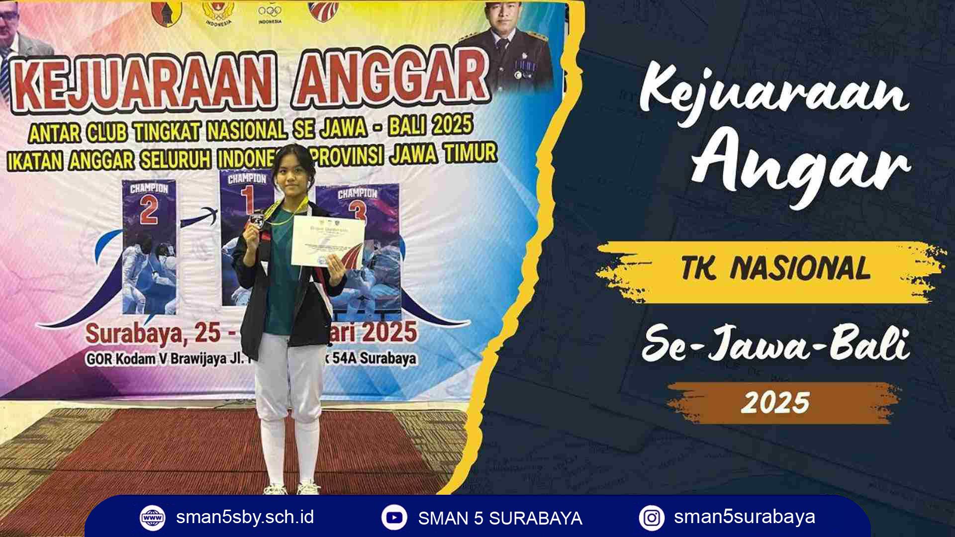 Masih muda dan energik, dia masih kelas X-8 SMA Negeri 5 Surabaya tetapi sudah mempunyai prestasi bidang olah raga Anggar yang cukup membanggakan. Dia bernama Celline Zanzabilla Putri Ardiyansha yang merupakan peserta dari Kejuaraan Anggar antar Club Tingkat Nasional se Jawa – Bali dilaksanakan selama tiga hari 25 – 27 Januari 2025 GOR Kodam V Brawijaya jalan Hayam Wuruk 54A Surabaya. Penyelenggaranya adalah Ikatan Anggar Seluruh Indonesia (IKASI) Jatim dan Forkopimda. Prestasi yang diraih adalah Juara 3 Degen Putri Beregu. Selamat Celline, teruslah berprestasi sesuai bakatmu !!