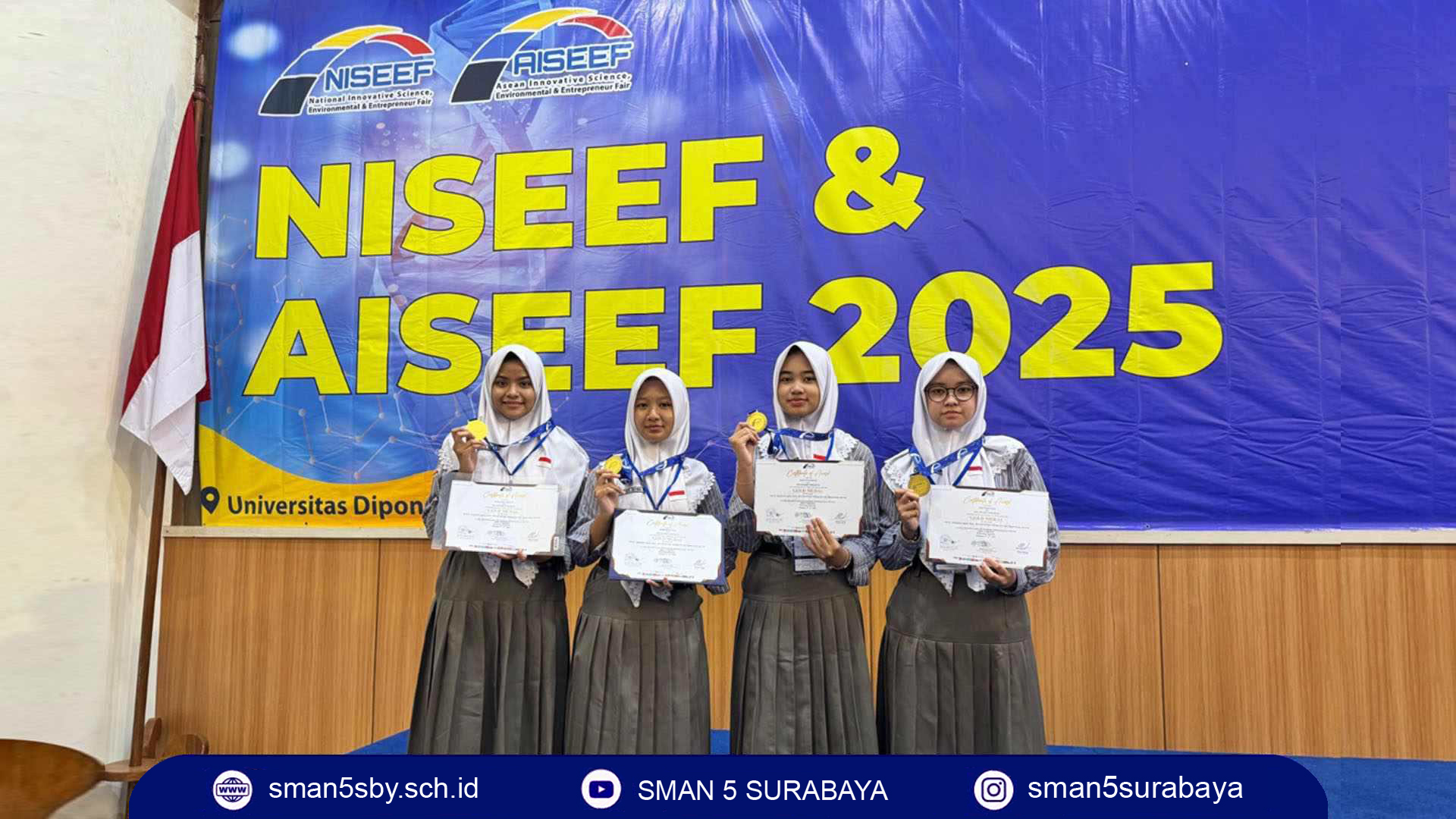Bidang yang dilombakan : Inovation Science, Entrepreneur, Social Science, Environmental Science, Cluster Mechanical and Shipping, Industrial Application. Alhamdulillah Tim SMA Negeri 5 Surabaya mendapat prestasi Gold Medal