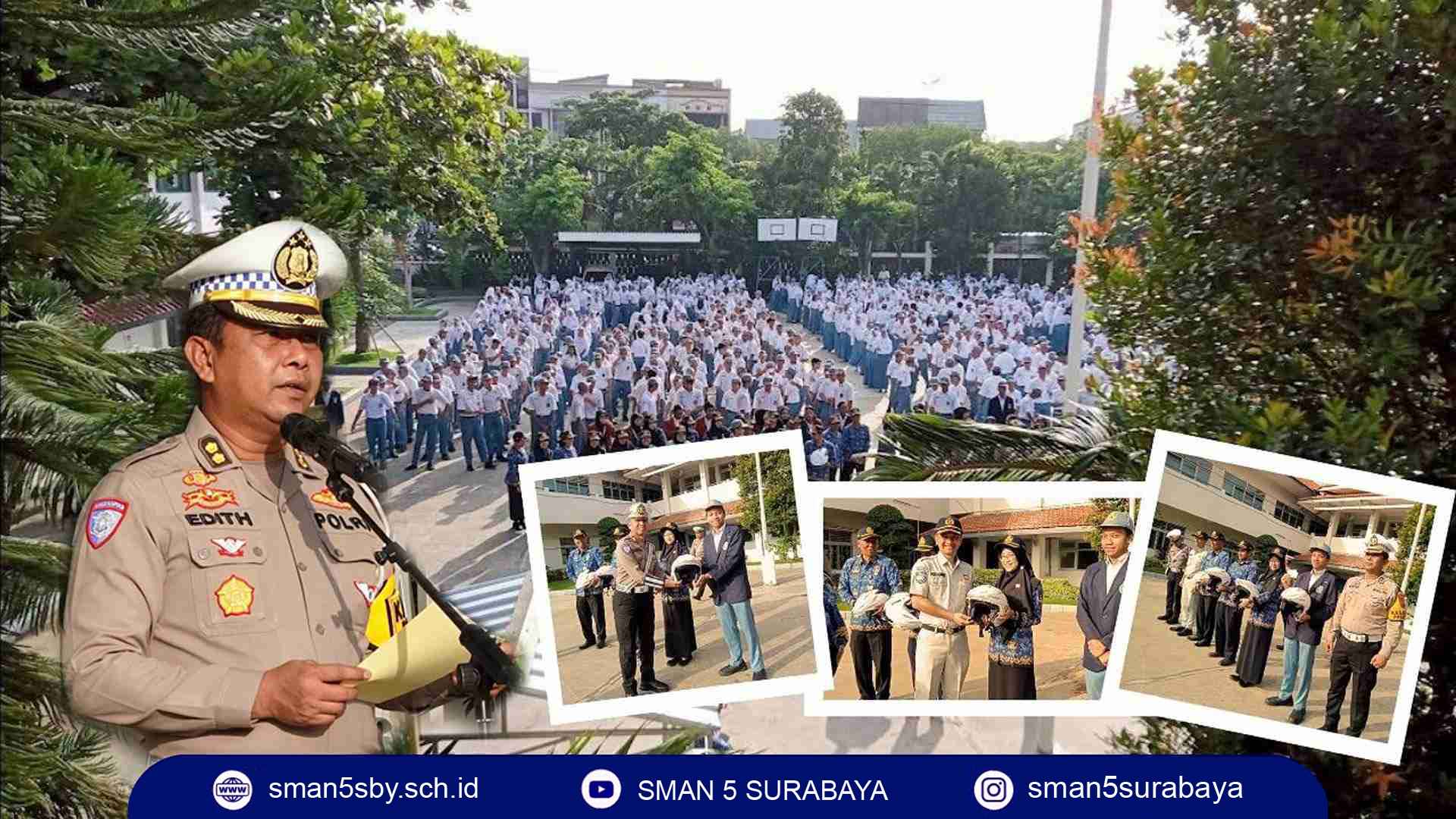 Pagi tadi dalam kegiatan apel di SMA Negeri 5 Surabaya dipimpin langsung dari Ditlantas Kepolisian Daerah Jawa Timur (Polda Jatim). Beliau Kasubdit Keamanan dan Keselamatan (Kamsel) AKBP Edith Yuswo Widodo, SH. Dalam sambutan apel tersebut beliau menghimbau kepada seluruh warga SMA Negeri 5 Surabaya khususnya siswa-siswi untuk selalu berbudaya tertib lalu-lintas. Hal tersebut didasari oleh keprihatinan bersama dengan masih tingginya angka kecelakaan di Jawa Timur. 60% didominasi kaum remaja (usia sekolah).