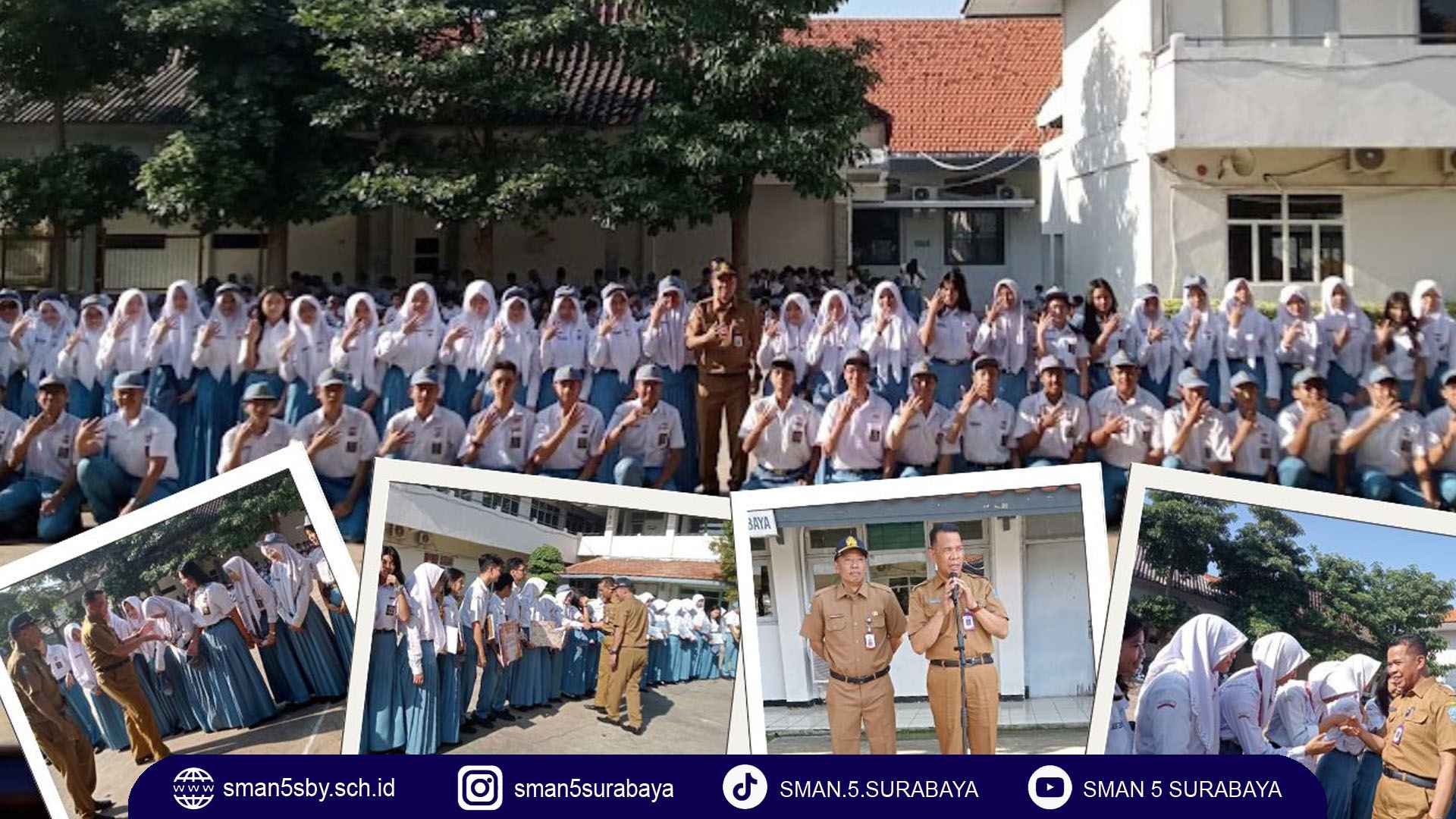 Kepala Cabang Dinas Pendidikan menyampaikan, “Prestasi ini bukan hanya milik kalian, tetapi juga kebanggaan seluruh dunia pendidikan di Jawa Timur. Kalian Teruslah berkarya, jaga sportivitas, dan jangan menjadi masuk hitungan saja tetapi layak diperhitungkan. Tunjukkan bahwa SMA Negeri 5 Surabaya adalah rumah bagi generasi unggul.” Semoga semangat pagi ini menjadi penyemangat bagi seluruh warga sekolah untuk terus melangkah, berinovasi, dan mengukir prestasi.