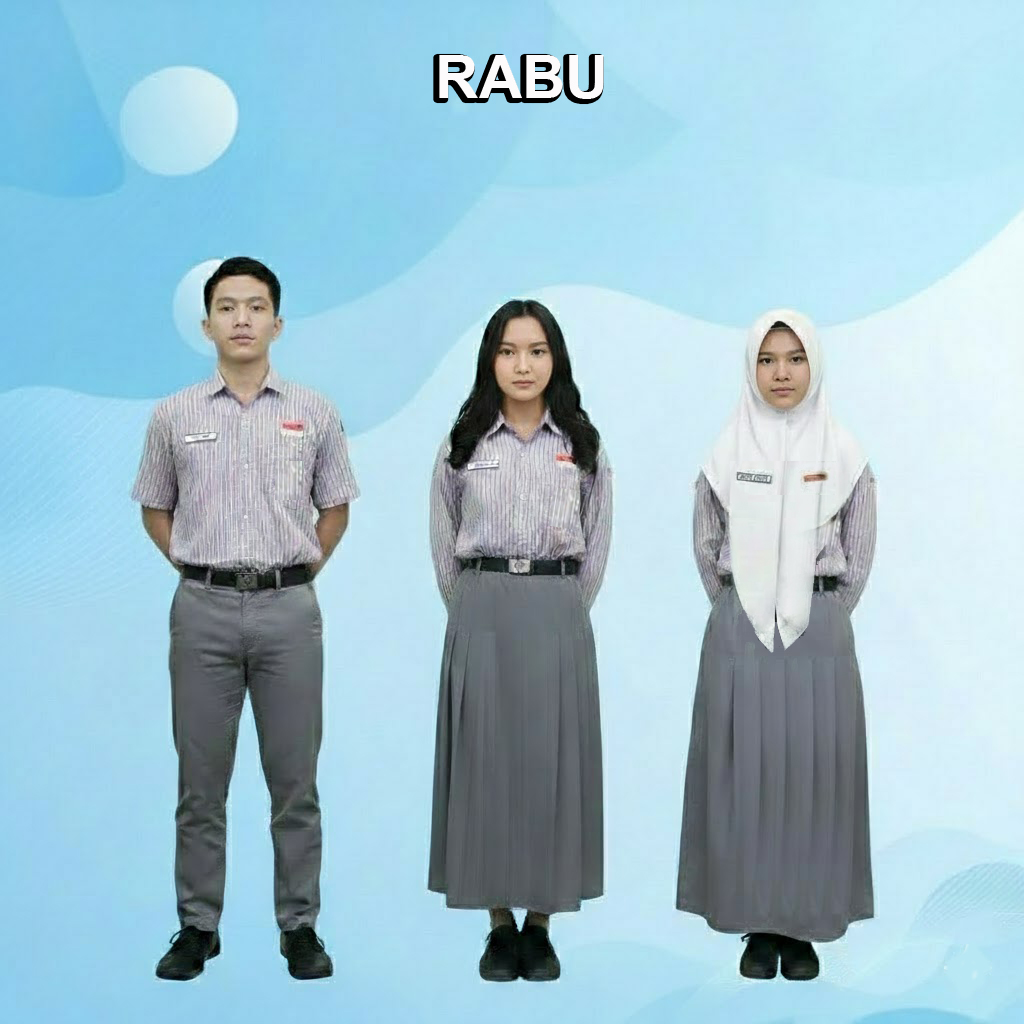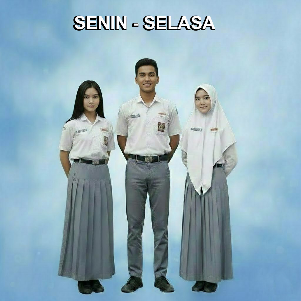 - Atasan Putih bawahan abu-abu, jilbab putih